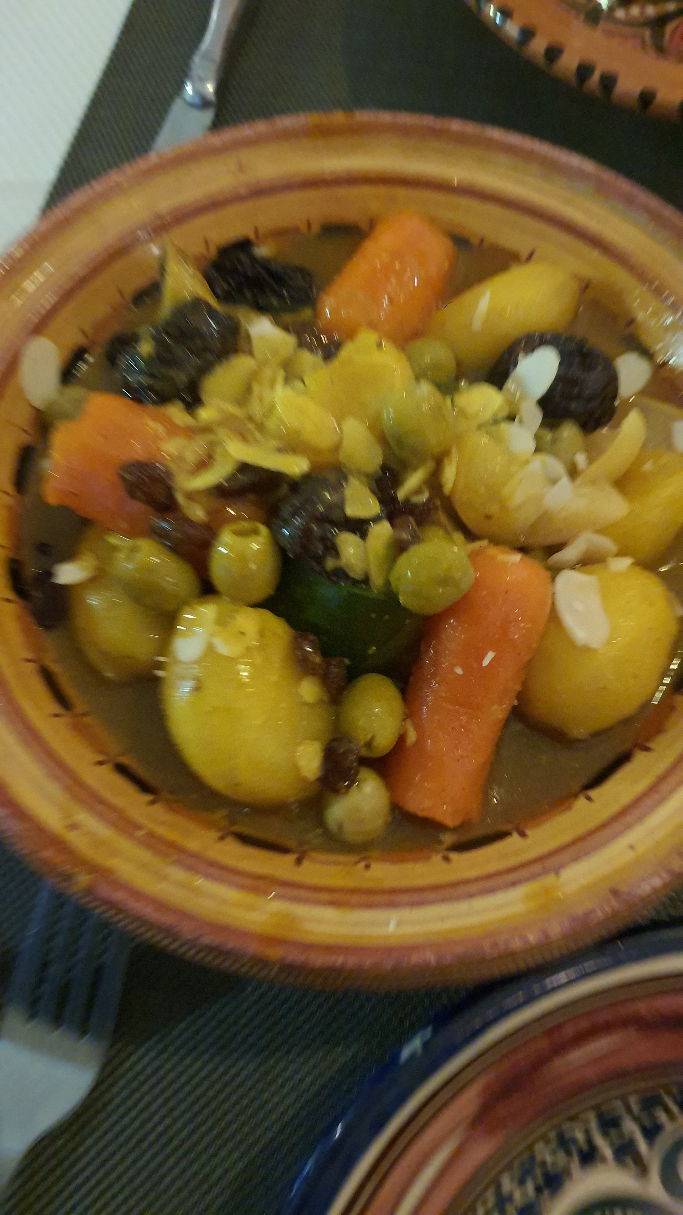 Posté le 17/09/2021 à 20:36"Nous sommes venus au Festival International de la Géographie. Les repas proposés dans les stands des organisateurs ne nous ont pas séduit. Bienheureusement, on a trouvé ce lieu. Prix, accueil et qualité irréprochables. Des vrais cous cous dans des très beaux assiettes. Si vous voulez des taijines vous devez commander par avance, car le propriétaire n'aime pas de servir des taijines passées par le frigo. Super lieu."