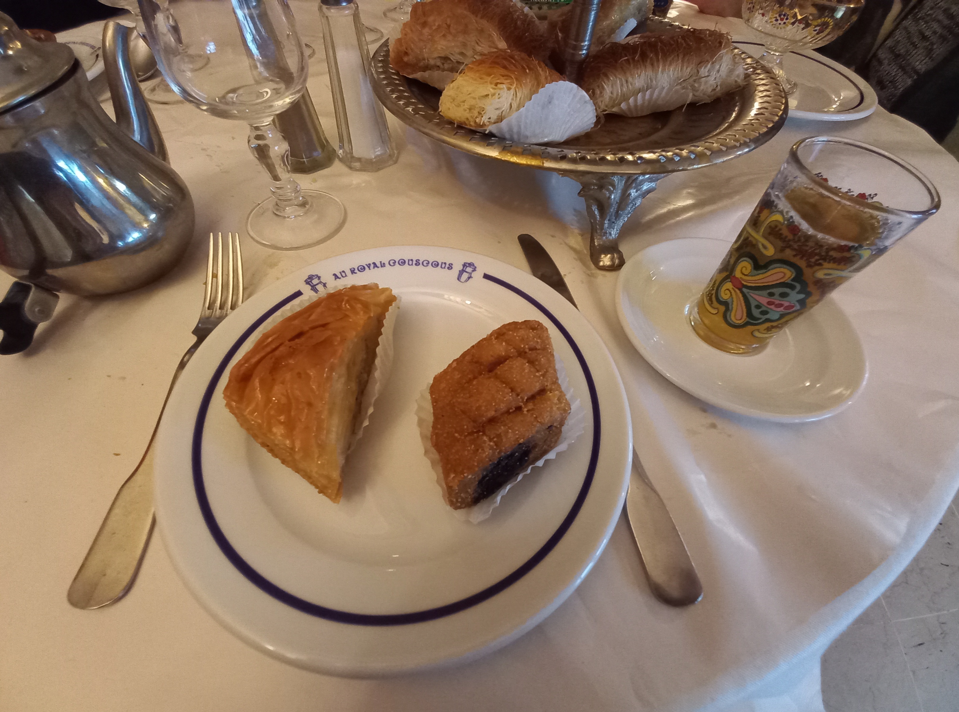 Les serveurs sont sympathiques et le couscous délicieux la semoule est fine en gros c'est délicieux. Pour les desserts je ne me prononce pas je n'aime pas la pâtisserie arabe je la trouve trop sucrée.